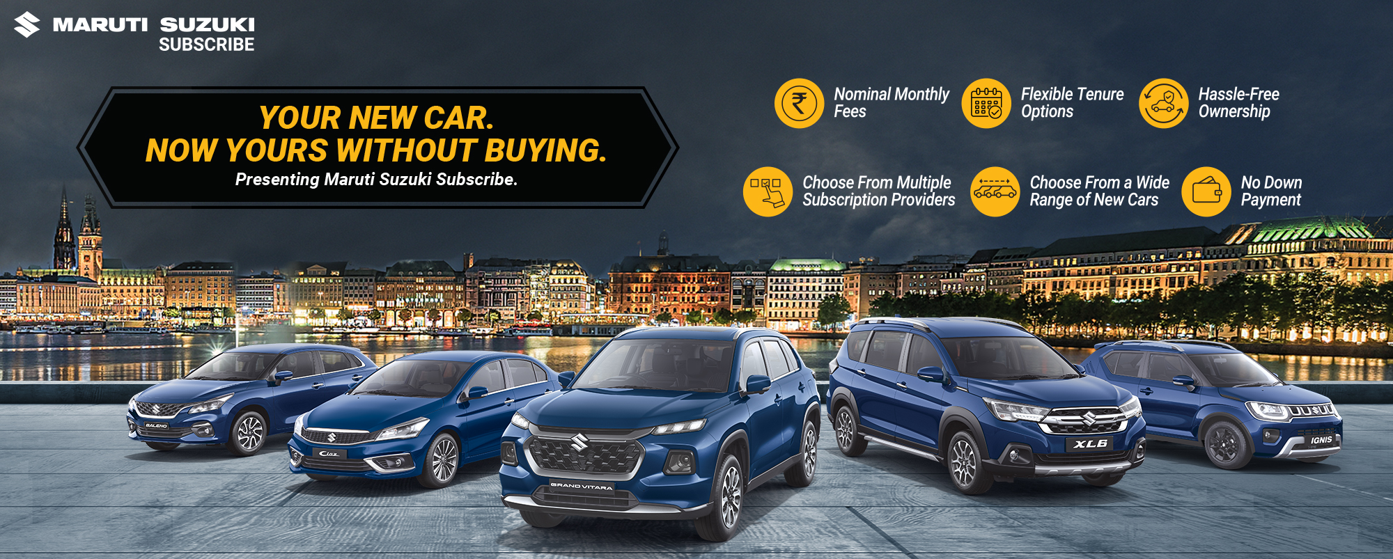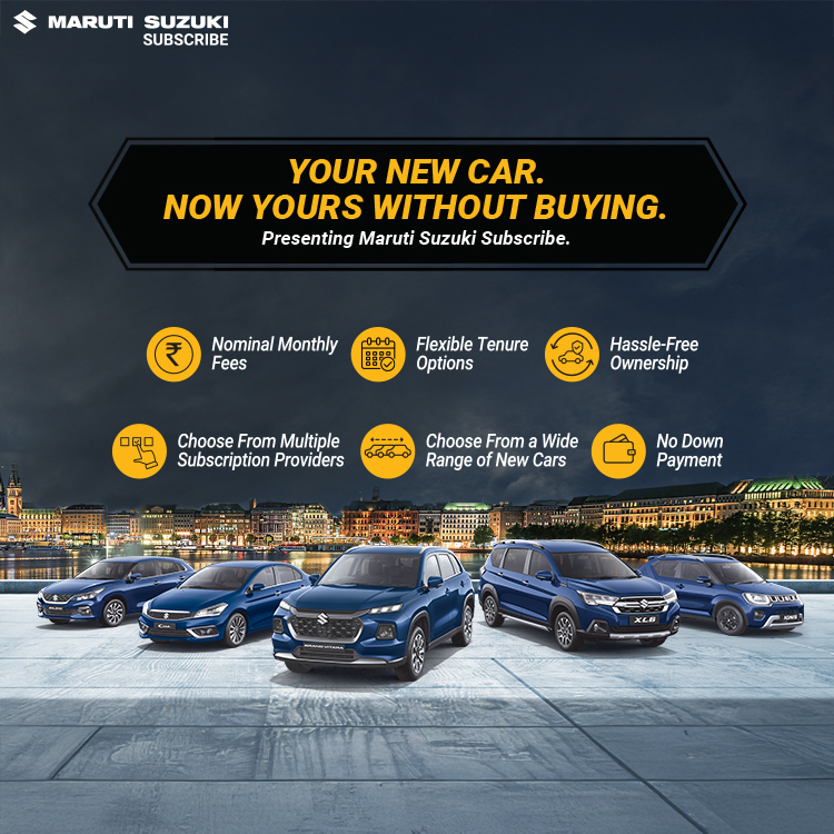 Maruti Suzuki Subscribe enables all customers to enjoy driving their preferred Maruti Suzuki cars without having to deal with all the financial responsibilities that come with owning a car.All you need to do is opt for a monthly subscription plan at a fixed monthly fee, which includes the routine maintenance and insurance costs, and choose a flexible tenure. At Pallavi Motors in, Chandmari, Guwahati, all Hatchback, Sedan, SUV, the MUV models line-up includes Baleno, Invicto, EVitara, Jimny, Ciaz, Ignis, Fronx, Grand Vitara, XL6. Here, you will enjoy Maruti Suzuki Subscribe benefits such as: